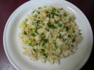 同じフライパンに油を少し足し、ご飯を入れて、パラパラになるように炒めます。