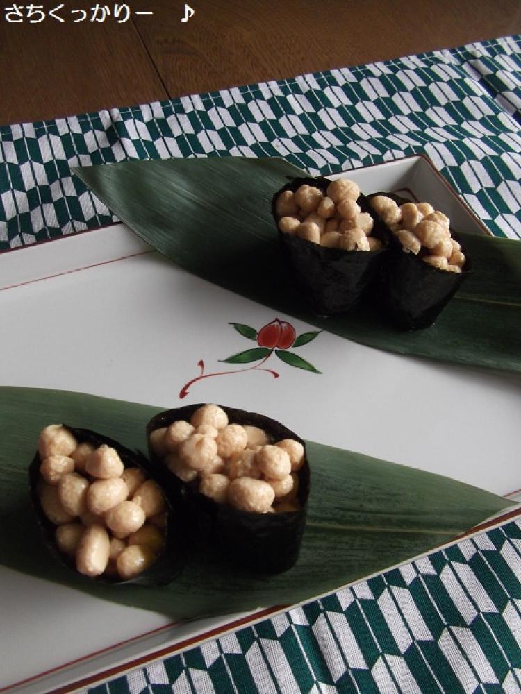 ご飯とAを混ぜ酢飯を作り、6等分した海苔で巻いて軍艦にします。