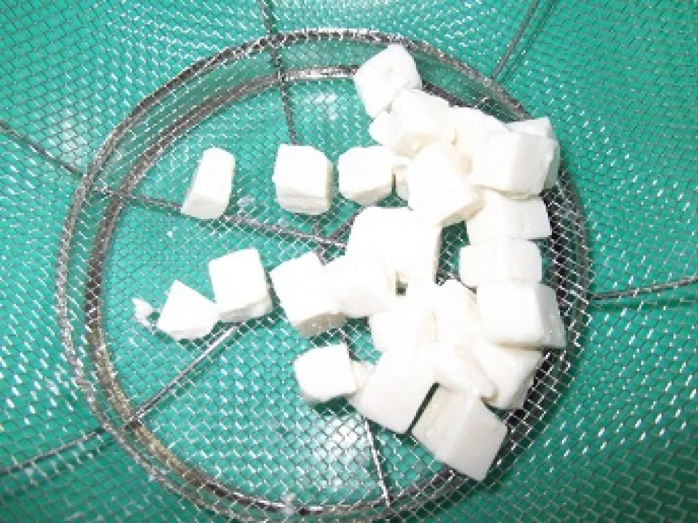 ![]() 豆腐を水切りして、8mm~1cm角に切ります。