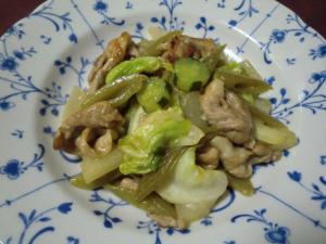 同じフライパンに油を足し、大根、キャベツ、キュウリ、フキと順に加えます。
