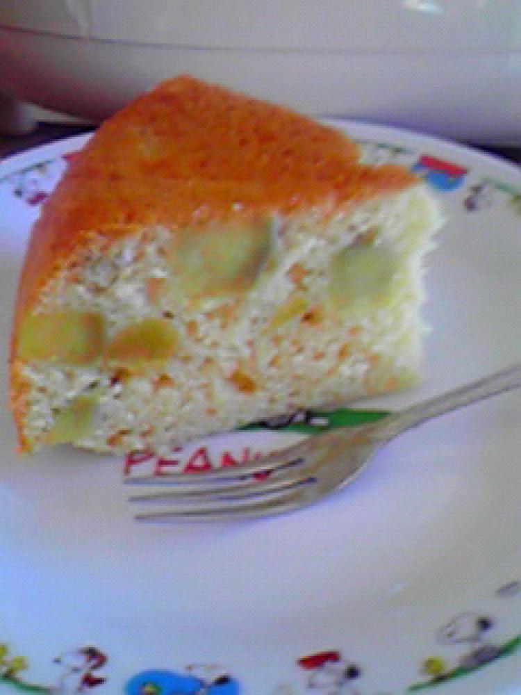 HMを加えたら、だまにならないよう、よく混ぜます。 さつまいもを加え、さっくり混ぜます |