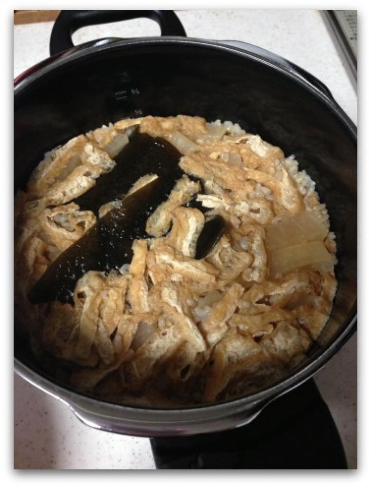 ![]() 圧力が下がったて蓋が開くようになったら蓋を開け、昆布を取り出しざっくりと混ぜあわせてたら再び蓋をして10分蒸らす。
