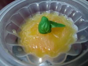 とろみがついたら2の果肉を加え、冷蔵庫で冷やし固めます。