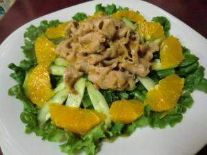オレンジは皮をむいて、1口大に切ります。小松菜は茹でて、食べやすい長さに切ります。