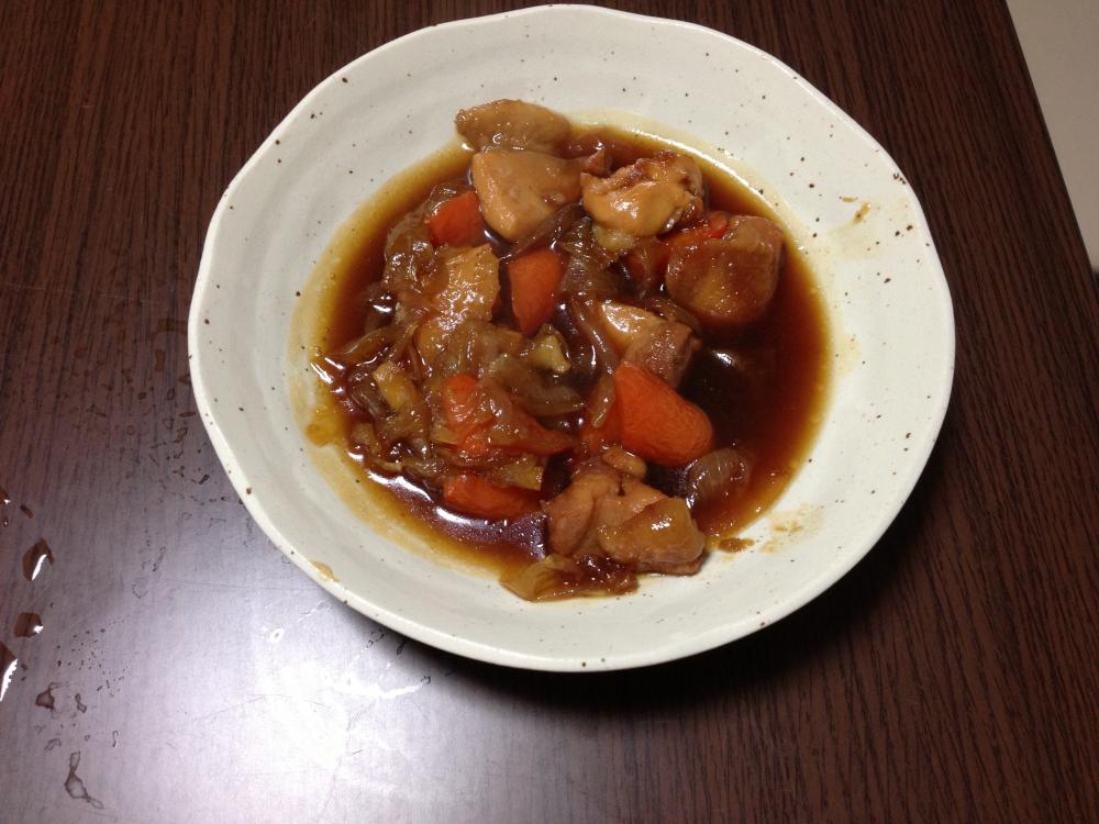 ①の材料をおなべに入れ、水1カップと出しの素をいれ沸騰させる。あくをとりながら、20分ほど煮込む。