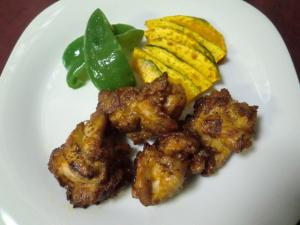 鶏肉に塩、コショウを軽くふって、もみ込んで、下味をつけておきます。