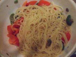 パスタを、袋に書いてある時間で茹でる。(大体2~3分)