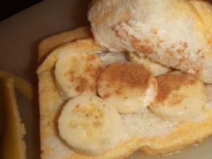 ![]() (1.)の食パンの中に、バナナを敷き詰め、シナモンとナツメグをふる。
