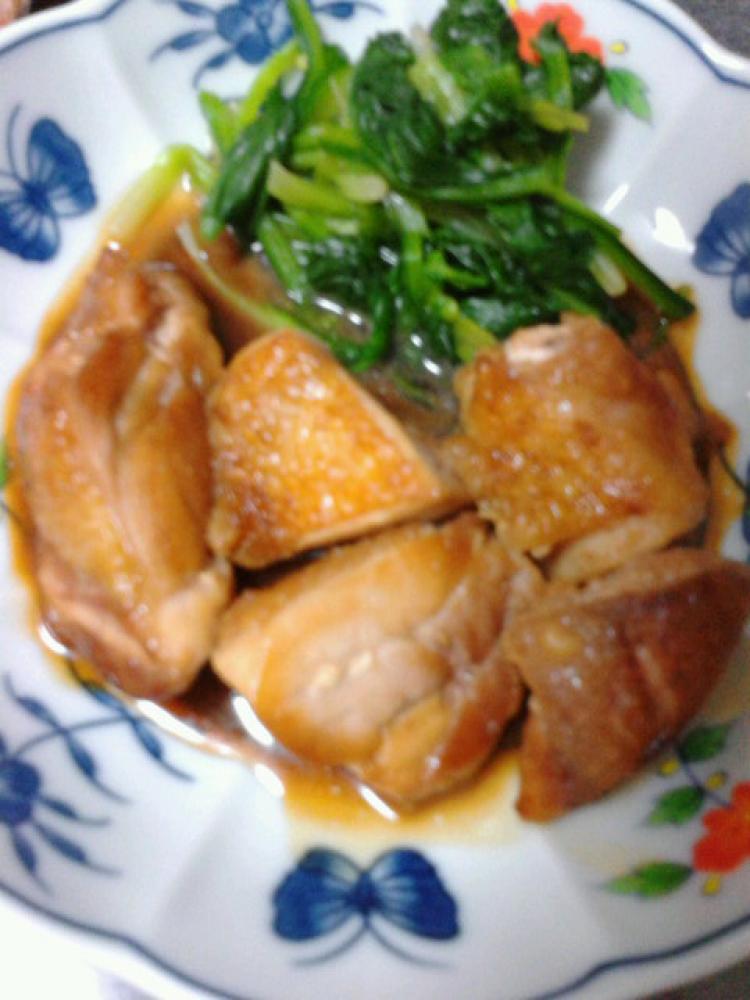 鶏肉に火を通し、お皿に盛り付けます。 |