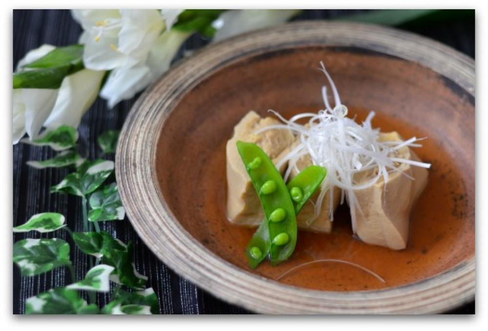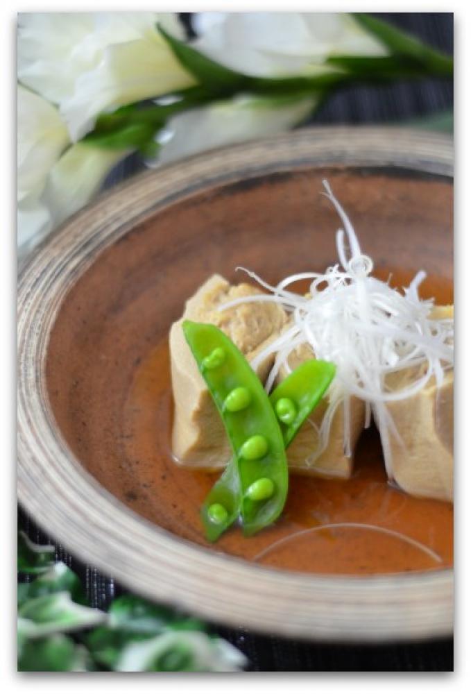 ![]() 器に盛り、白髪ネギをトッピングし、あればスナップエンドウ、絹さやなどを飾る。