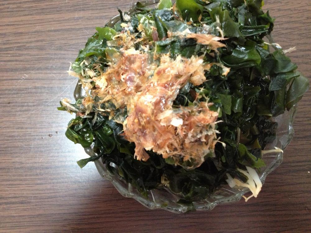 もやしとわかめを器に盛って、かつお節とちりめんじゃこをトッピングすれば出来上がり。