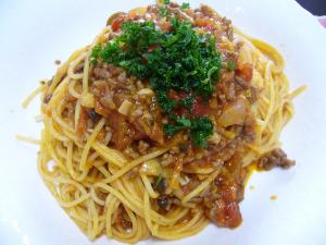 ③ソースが煮詰まったら、フライパンに茹であがったパスタを入れて、しっかりからめる。