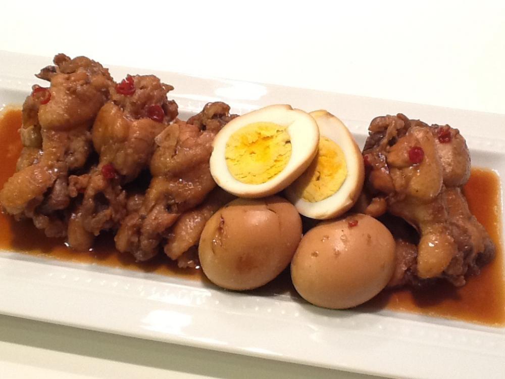 火を消し手羽元とゆで卵を上下に返したら、蓋をして粗熱が取れるまで少し置きお皿に盛りつけて出来上がり!