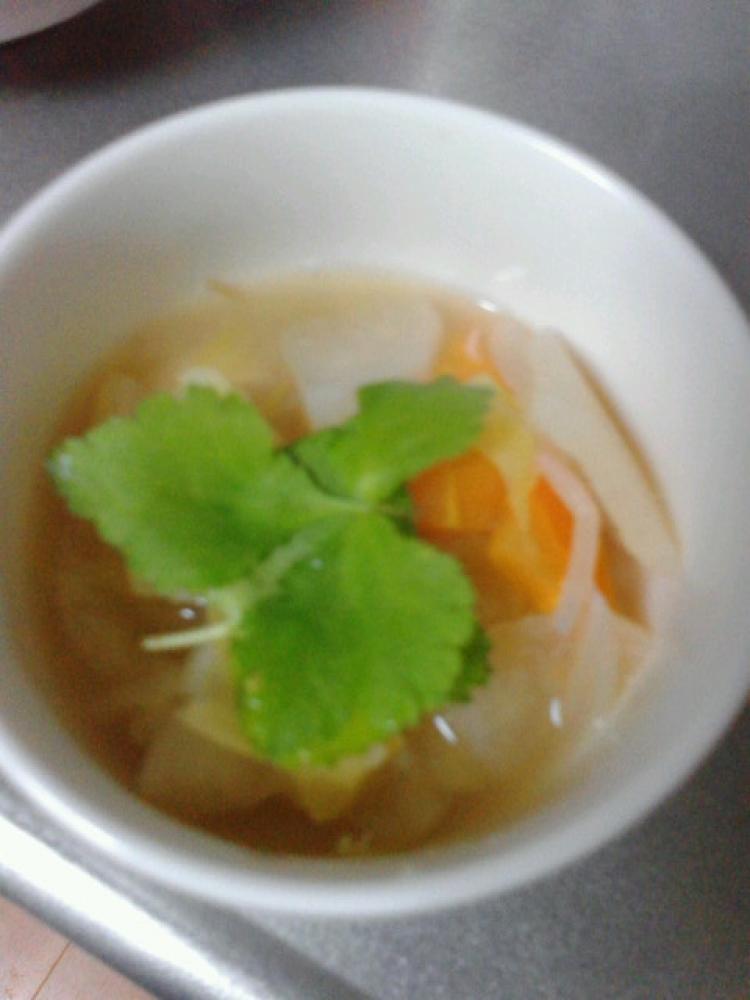 鍋に、大根・人参・玉ねぎ・キャベツと水を入れて火にかけます。