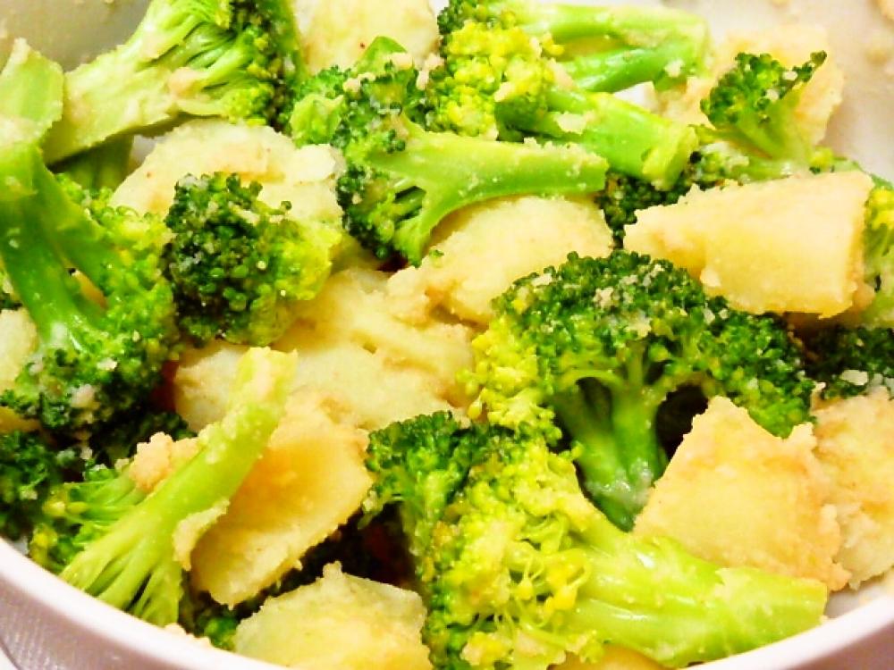 器に、薄皮を除いた明太子とマヨネーズとバターとレモン汁を入れて混ぜ合わせて、ブロッコリーとじゃが芋を加えて、よく混ぜ合わ