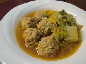 しんなりしてきたら、2のひき肉を丸めて、スープに落としていきます。