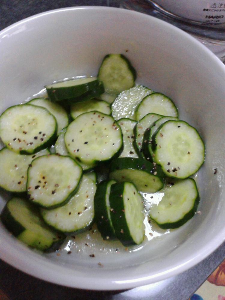 きゅうりは2mm位の輪切りにします。