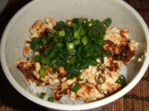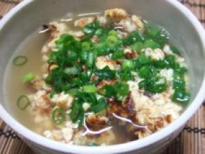 ![]() 器にご飯を盛り、(2.)をと刻んだネギを乗せ、熱々のだし汁をかける。