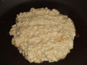 ![]() フライパンにごま油を熱し、(1.)を入れ両面焦げ目がつくまでしっかり焼く。
