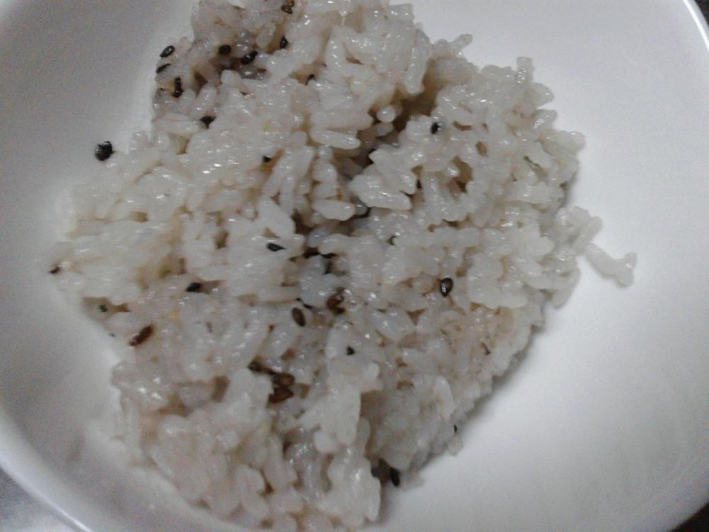 黒ごまを加え、軽く混ぜ、梅干しを乗せます。