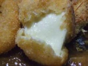 衣を2重につけたので、揚げても中からチーズが溶けだしませんでした |