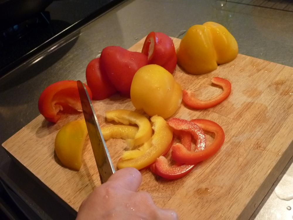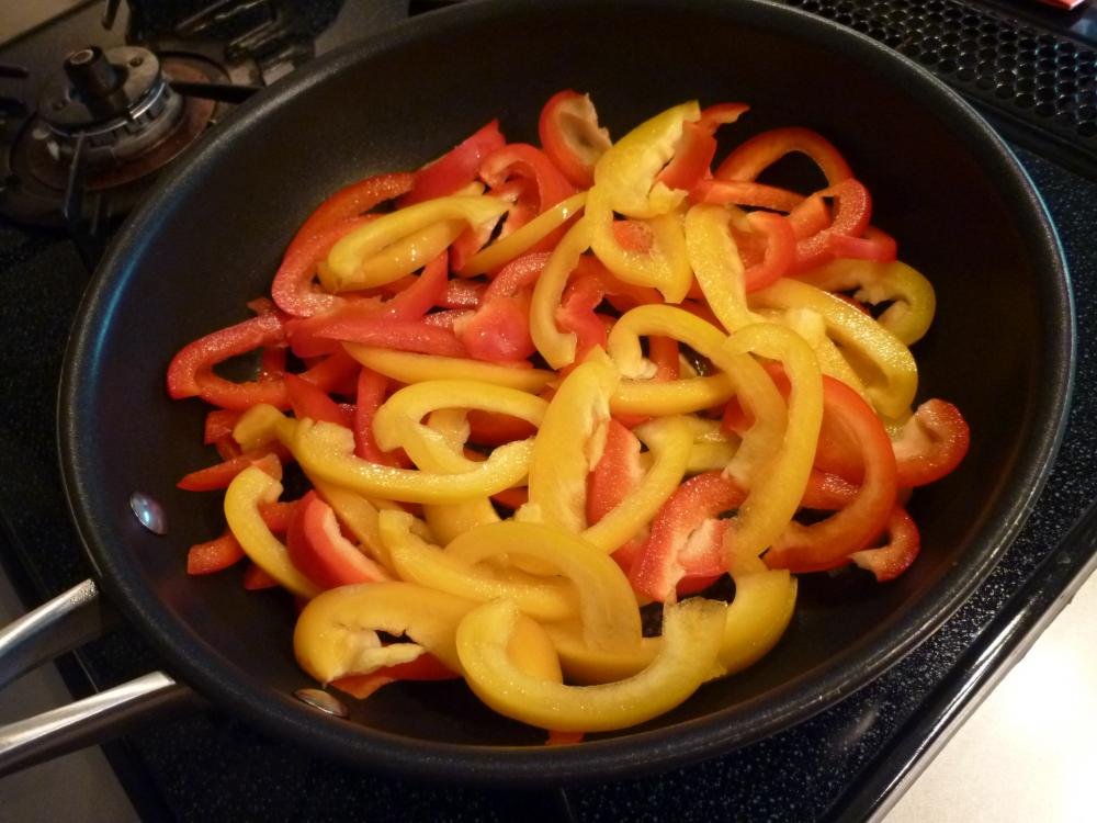 ![]() オリーブオイルを熱したフライパンでじっくり火をいれる。