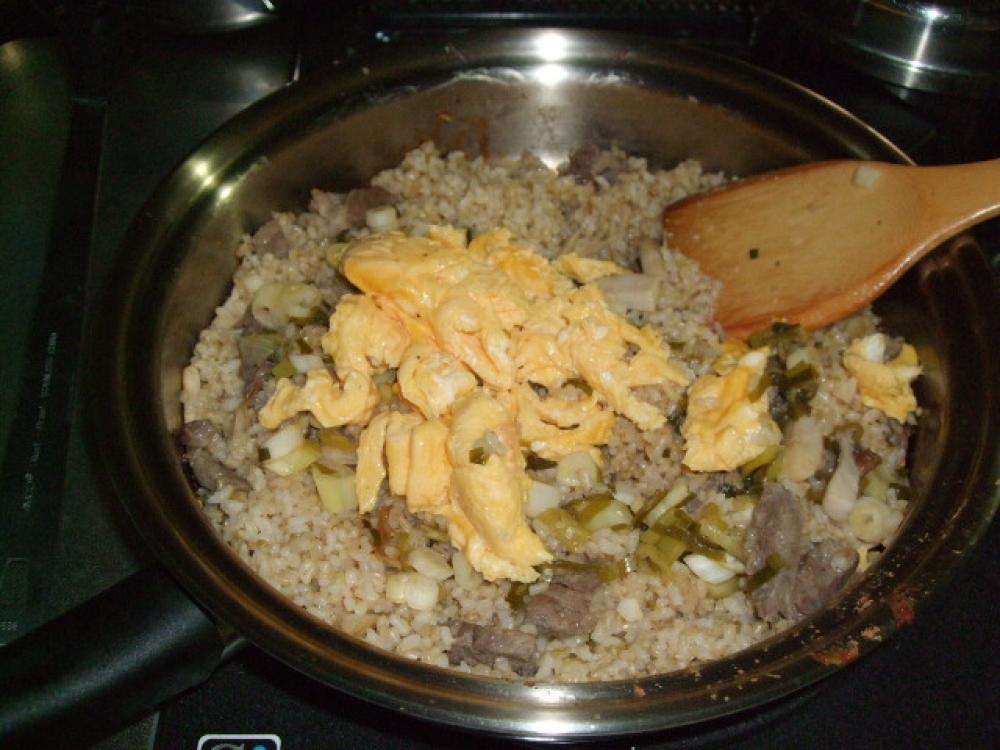 ![]() 塩・コショウして卵を加え、ネギポン酢を回し入れ全体を切る様に混ぜます