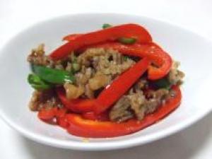 ピーマン・パプリカは細切り、しょうがはみじん切りにする。