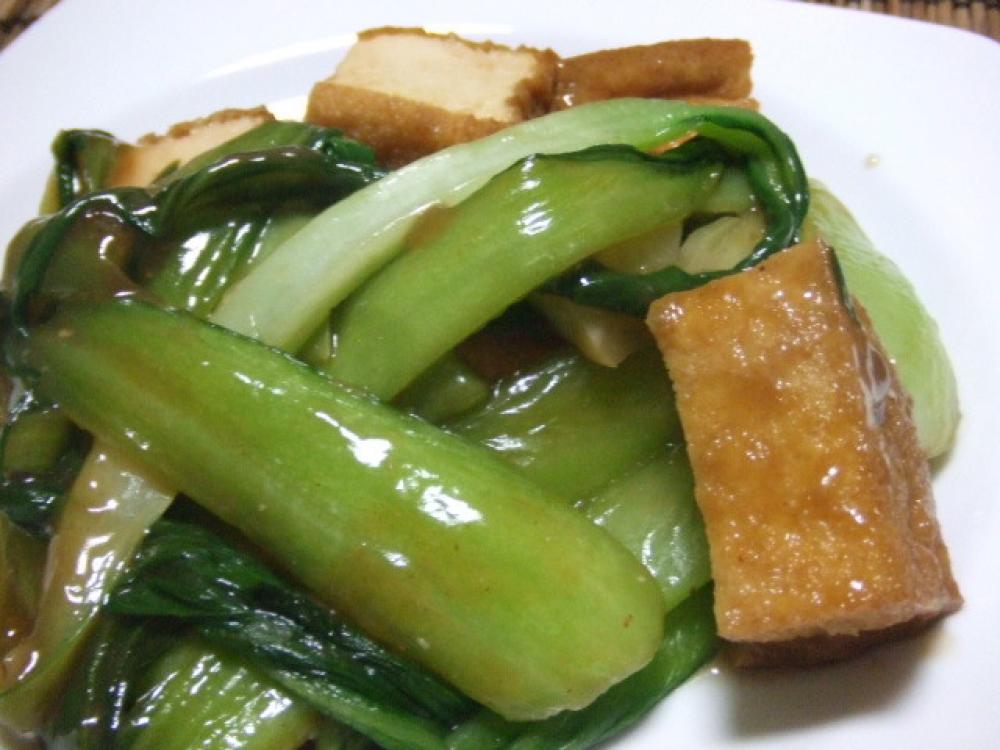 フライパンにゴマ油を熱し、生姜を炒め香りが出たら、青梗菜・厚揚げを入れ炒める。
