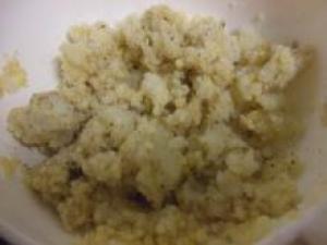 ![]() 鍋に水と雑穀を入れ火にかけ、沸騰してからさらに5分ほど茹で、水気を切って(1.)と混ぜ、塩・ブラックペパーで味をつける。