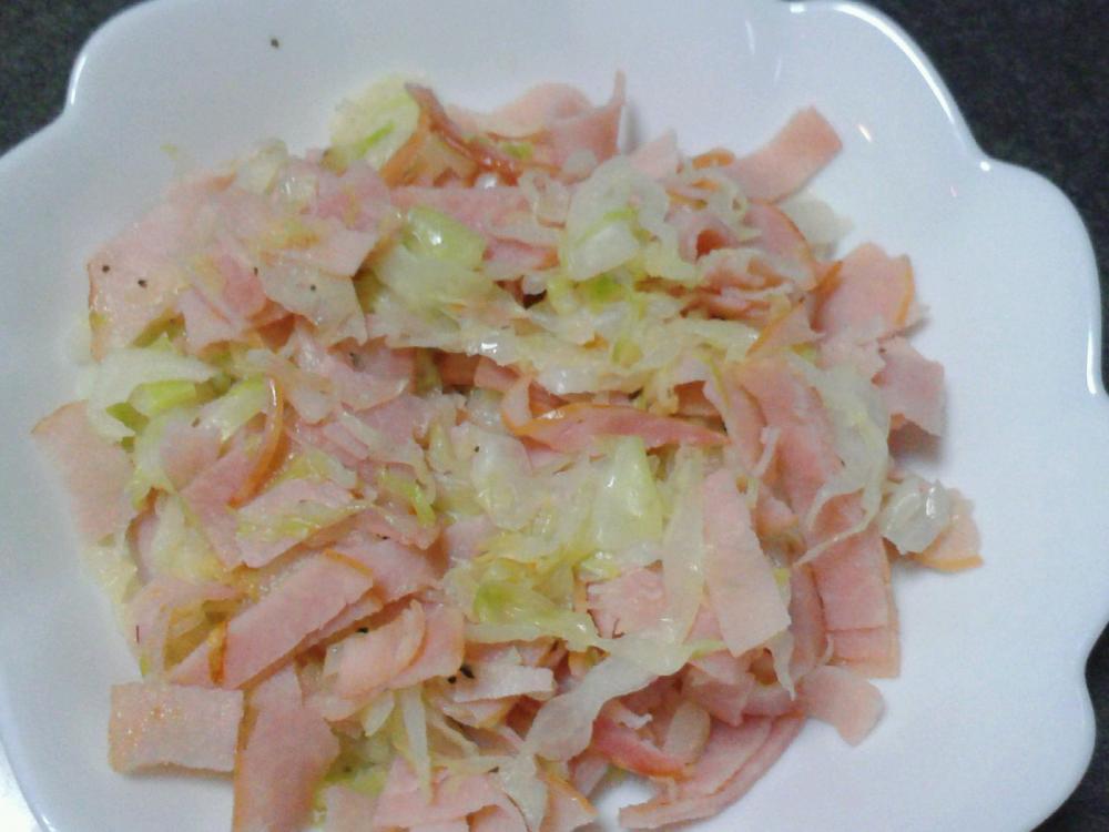 ハムを乗せ、軽くラップをし、レンジで1分半加熱します。