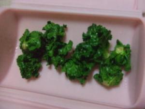 ![]() プチヴェールは、サッと洗いルクエに入れ、500Wのレンジで1分加熱する。(サッとゆでてもOK)