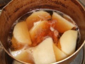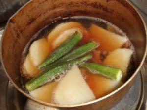 ![]() 鍋にめんつゆと水を入れ、軽く煮立ったら、長芋と梅干しをちぎりながら加え、3~4分煮る。