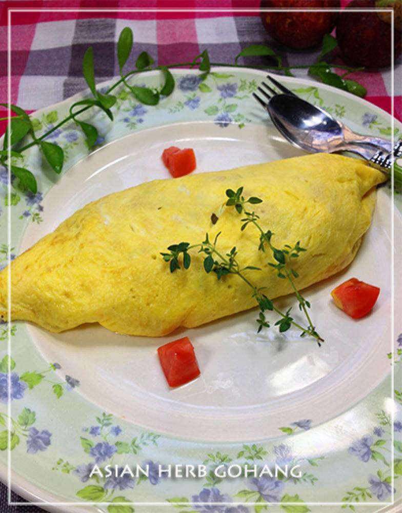 ![]() 一度のの字を描くようにぐるりと卵を混ぜたら具を乗せ、耐熱ゴムべらで両端の卵を被せて返しながら皿に入れ、そこで形を整えます