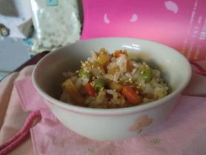 5が炊き上がったら、全体にザックリと混ぜて、器に盛り、白ゴマを振ります。