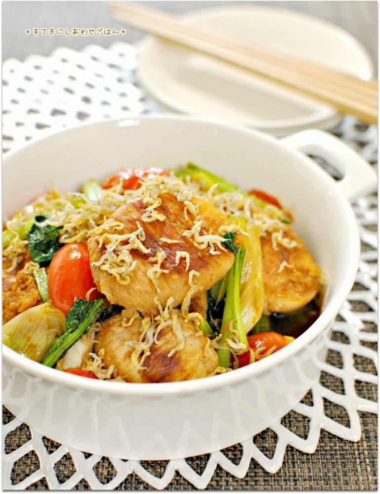 ![]() 器に盛り付け、3のちりめんじゃこを散らして完成。