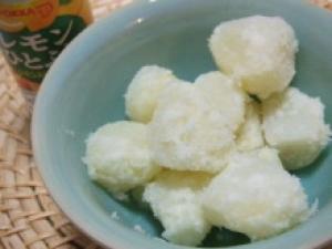 ![]() 粉がふいたような状態になったら、塩・レモンパウダーをまぶし、火を止める。