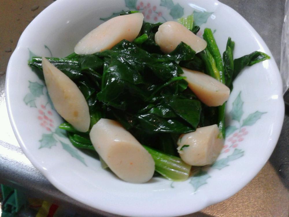 魚肉ソーセージも加え、さっと火を通し、塩で味を調えます。