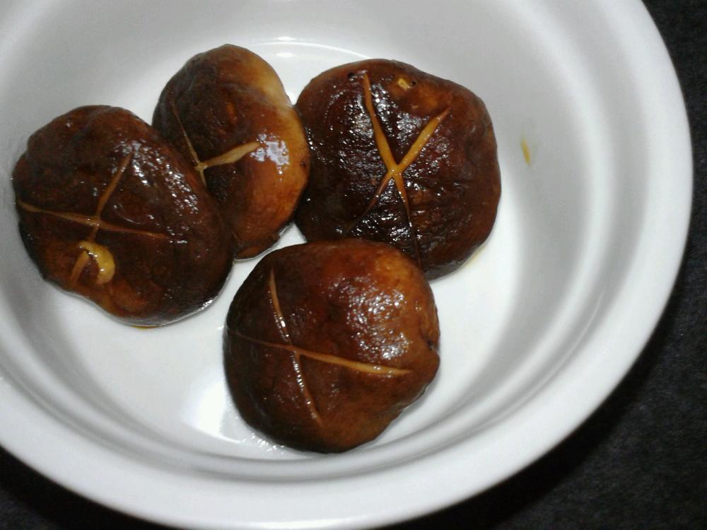 香りが出てきたら、にんにくを取り出し、しいたけを焼きます。 |