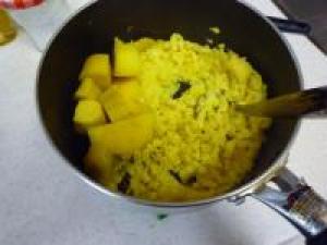 ![]() 最後に、甘露煮と塩を加えて甘露煮に火がとおったら完成です。