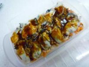 ![]() その上に牡蠣を敷き詰めて、焼肉のたれをかけ、塩、コショウをします。