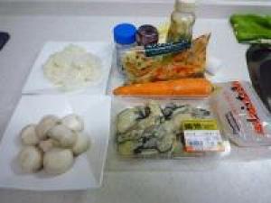 ![]() マッシュルームは薄切りにします。牡蠣は片栗粉で洗ってください。