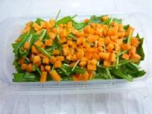 ![]() スチームケースに水菜、人参を敷き詰めます。