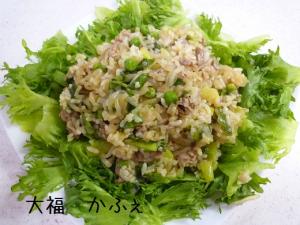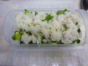 ![]() スチームケースに入れていきます。1番下に粗みじん切りにしたチンゲン菜、次にご飯を盛りつけます。