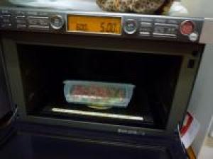 ![]() あとは、レンジで5~7分加熱して。加熱が終わったら、2~3分ほど蒸して、材料をよく混ぜ合わせてお皿に盛ったら完成です。