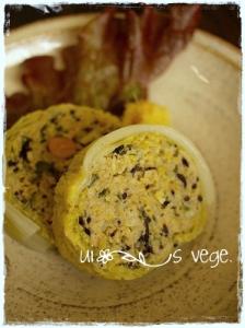冷やした生地を取り出して形を軽く整え、周りをわわ菜で巻きラップで包みルクエに入れて電子レンジで6分程加熱し、そのまま冷ま