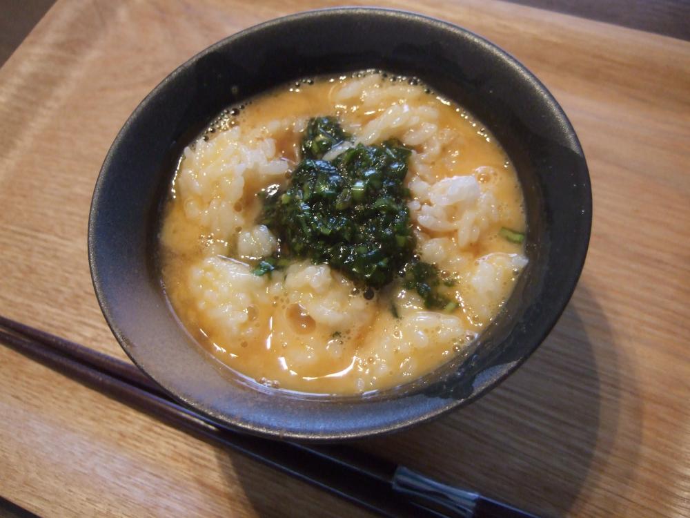 ![]() 玉子かけごはんにニラだれをかける。