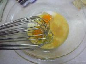 ![]() ボールに、卵、砂糖、油、牛乳、ラム酒を入れて混ぜ合わせます。