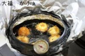 生地をすくって、150℃~160℃の低温の油であげます。 |