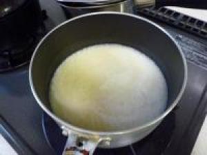 ![]() 鍋にいれ、砂糖を加えて後はコトコト煮込んでとろみが付いてきたら完成です。